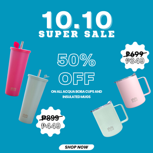 50% OFF ON ALL ACQUA BOBA CUPS & INSULATED MUGS.